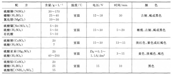 鋁及鋁合金經(jīng)過(guò)陽(yáng)極氧化后,再放人含有鎳鹽、鉆鹽、錫鹽或銅鹽等溶液中進(jìn)行交流電解,使膜孔底部沉積上金屬鎳、鈷、錫或銅等而呈現(xiàn)出不同的色彩。該工藝具有工藝簡(jiǎn)單、能耗低、著色均勻、生產(chǎn)效率高等特點(diǎn)。表7—4列舉了鋁及鋁合金的電解著色工藝。