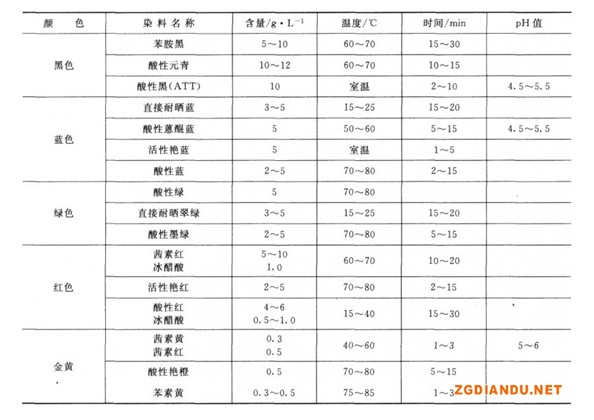 表7-5鋁及鋁合金有機(jī)染料著色工藝