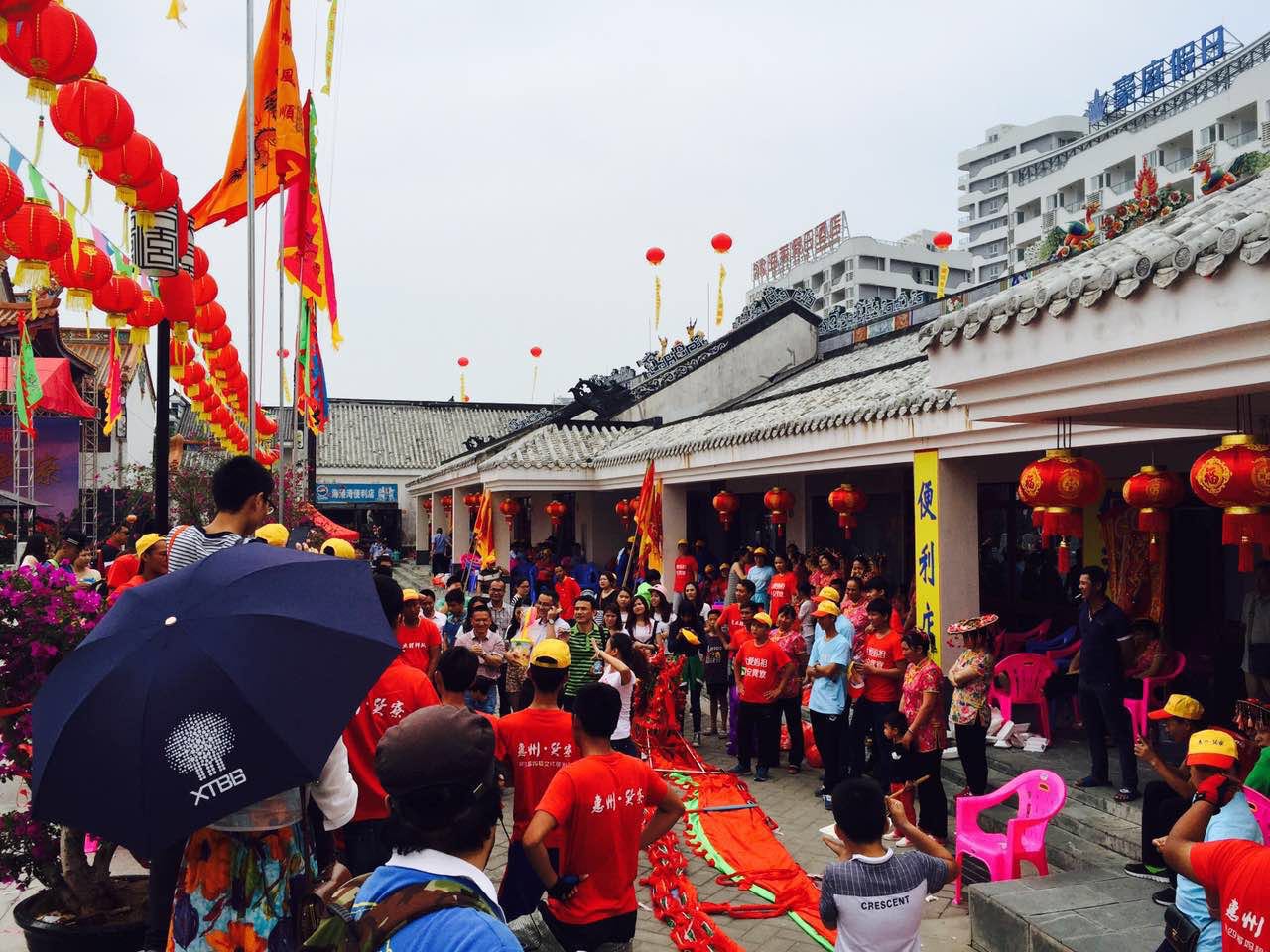 在經過了四小時的車程后,于中午時分到達了素有中國的馬爾代夫之稱的惠東巽寮灣。一行人一下車便開始了第一項拓展挑戰——人員分成三組,分別找到天后宮的正門及概念銷售手中的礦泉水,且銷售出去后水還在手中。巽寮灣的景點之一的天后宮在這天正好遇上一年一度的媽祖誕辰,各地的旅游團和朝拜人士都從五湖四海聚擁而至,人山人海的場面相當熱鬧。