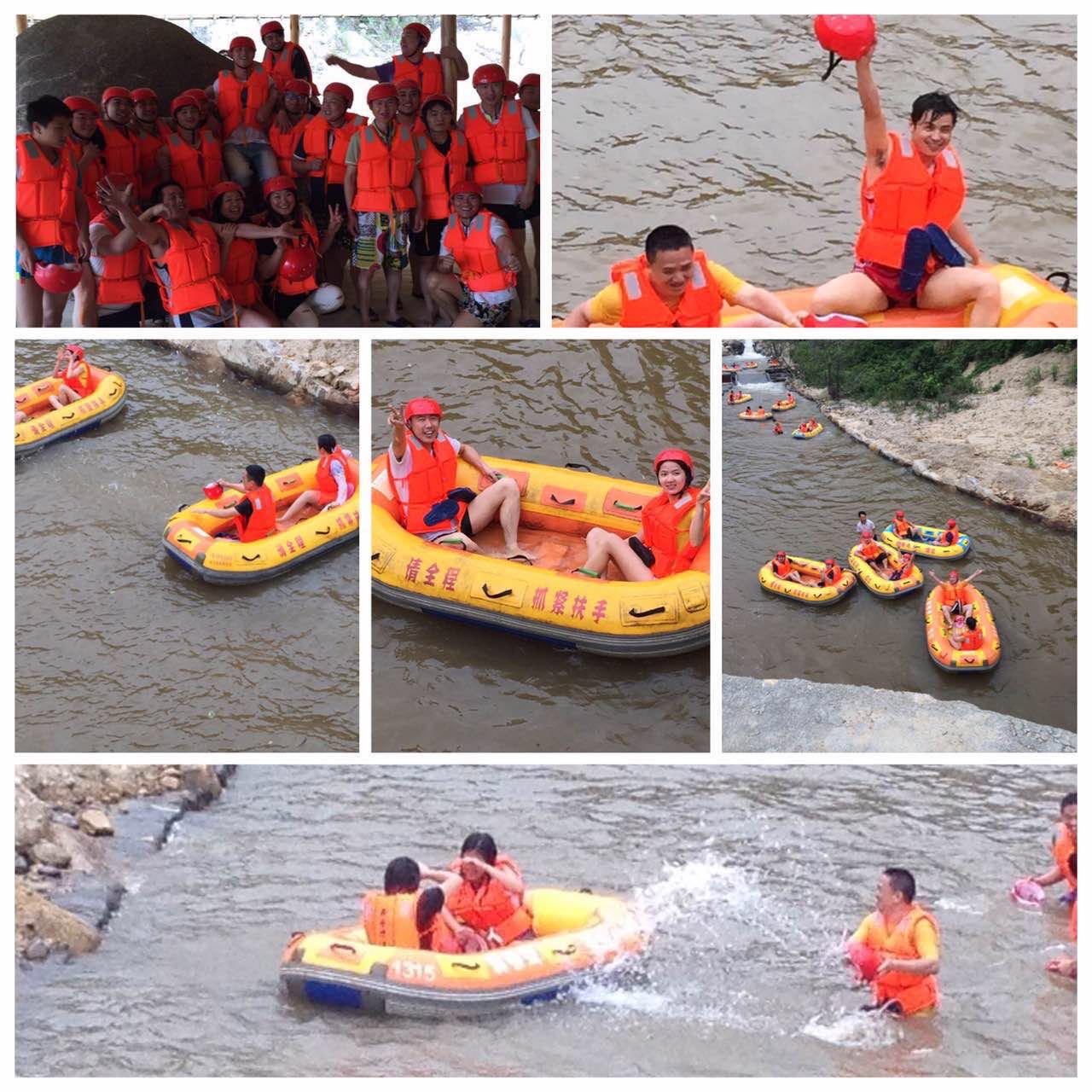 中午大家在一起享受了一番當地美食之后,驅車來到了巽寮灣龍騰峽漂流,開始了我們的第二項挑戰。盡情享受漂流給心靈帶來歡愉與刺激的同時,享受大自然的鬼斧神工之妙!平時一向溫和的李總和林總,也童真了回,孩子氣地直接從漂流艇上跳入水中,和大伙一起玩起了潑水大戰,更加拉進了彼此間的距離感。