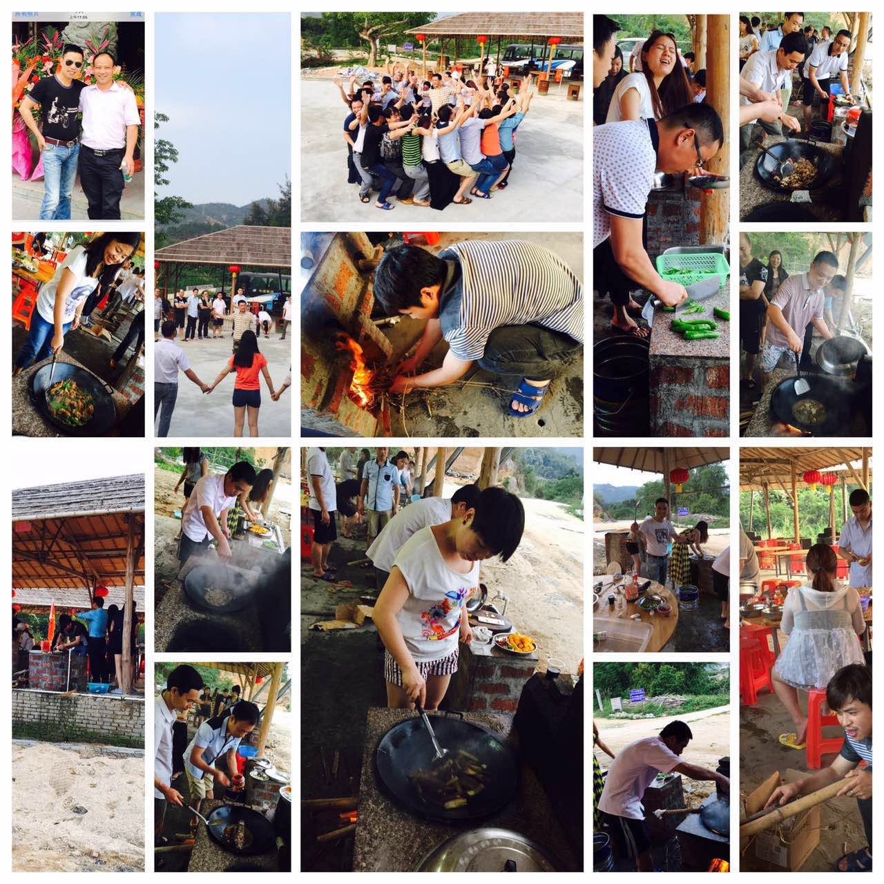野炊比賽中,大家分成四隊后,大家在每隊自選出的隊長帶領下,分工明細,一下子都開始忙開了,團隊協作的力量就是強大,李總、林總都當起了大廚,而且還都有拿手好廚藝,美味飄香到鄰桌的“饞貓”都湊過來偷吃,一飽大師級手藝,著實讓我們大跌眼鏡!
